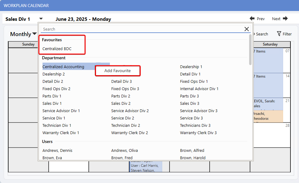 Workplan Calendar Favouriting - Quickly access frequently used calendars to save time and simplify navigation.