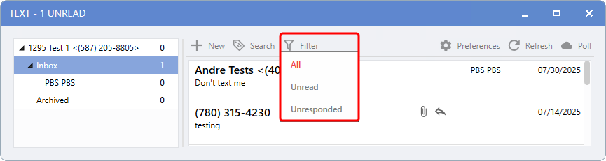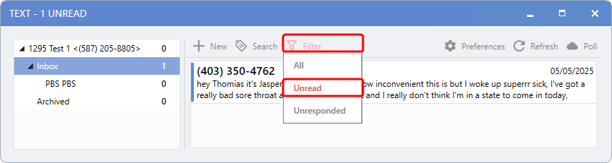 Simply select the desired filter at the top of the message list to apply.