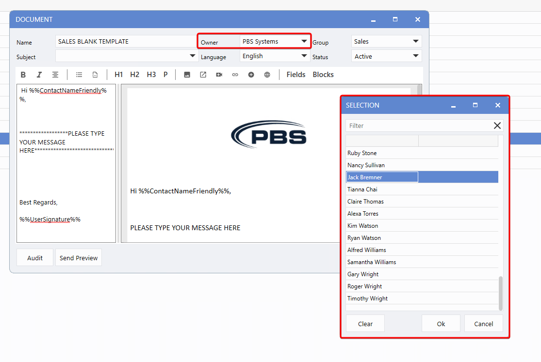 Owners can also be updated within a document's
