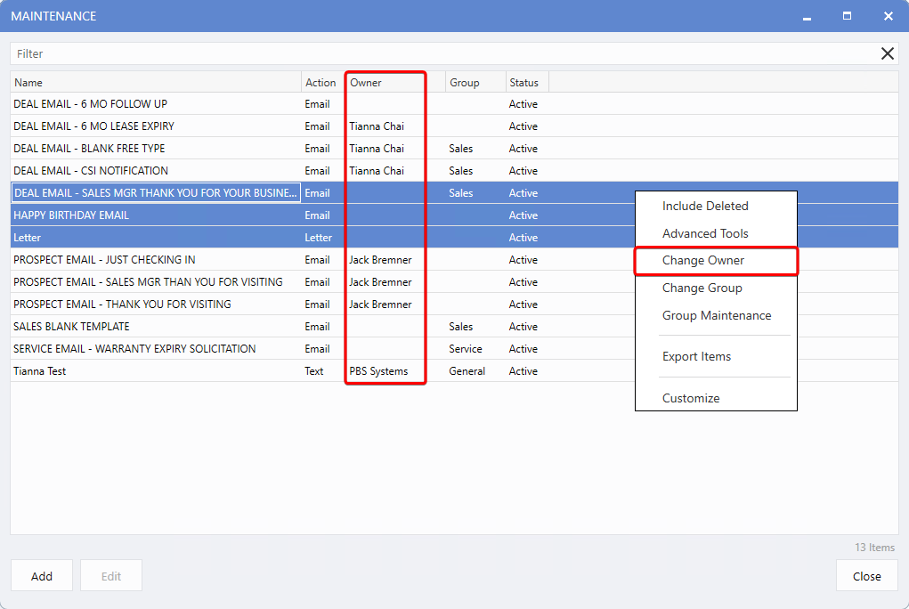 Change Owner.