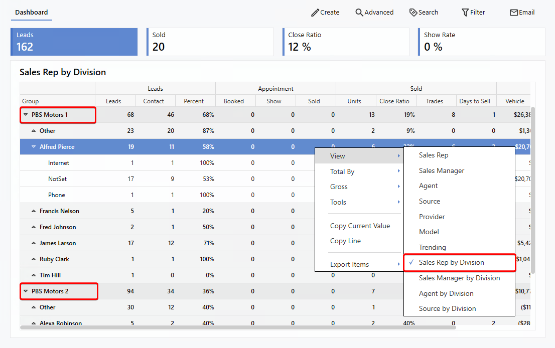For Dealerships managing multiple divisions, Version 10.23 introduces four new division-based views, expanding the ways you can analyze and compare lead performance across locations.