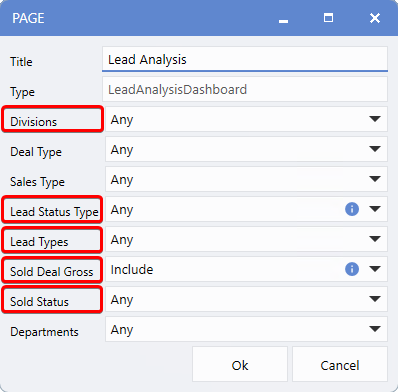The Lead Analysis Dashboard in Version 10.23 now offers expanded Page Criteria options, giving users greater flexibility and control when analyzing lead performance. For dealerships with multiple divisions, Users can now choose which divisions to include and tailor the data displayed for each selected division.
