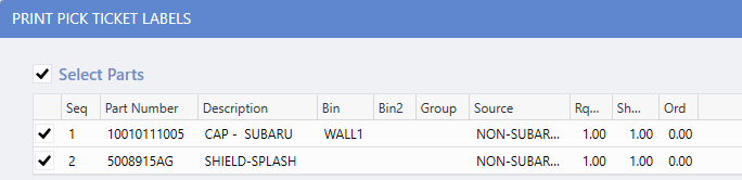 New Label Selection Window: A brand -new window allows Users to select exactly which Parts require Pick Ticket Labels. This added control reduces unnecessary printing and streamlines the overall process.