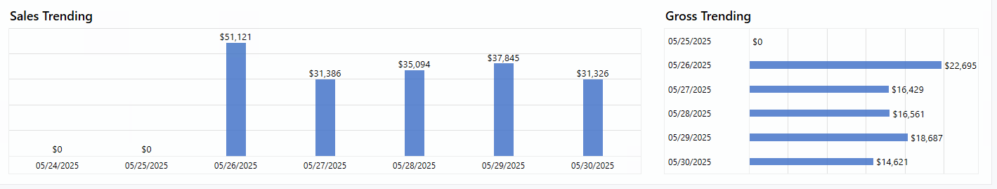 Along the bottom of the Dashboard, you'll find two trend-focused charts: