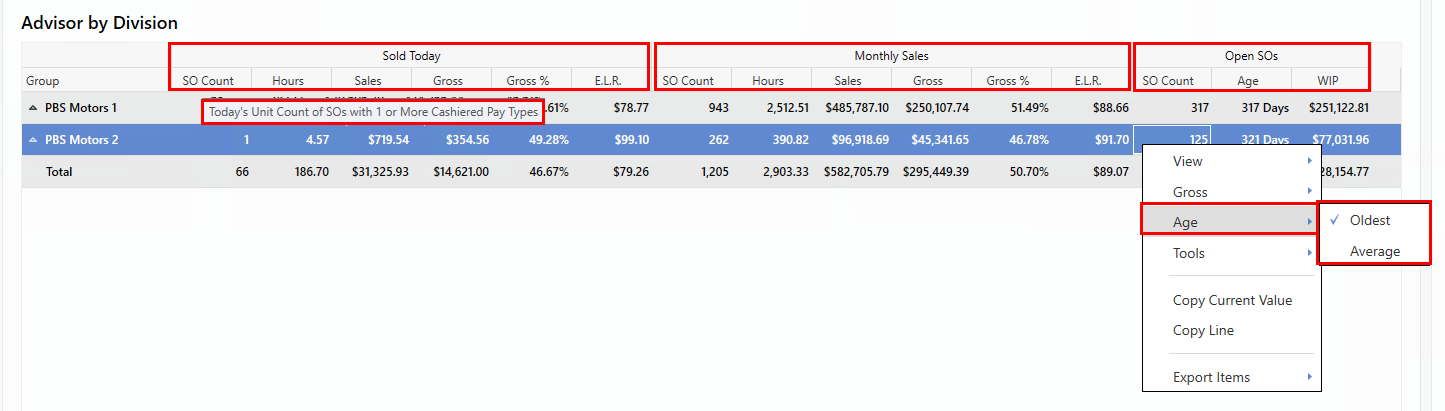 For Dealerships using divisional setups, this option offers flexible data views. You can select