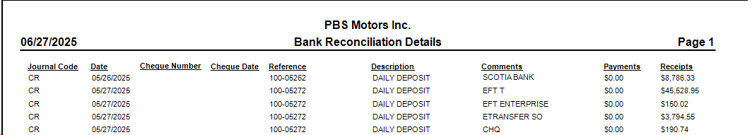 Non-Disruptive Access: Review reconciliations without entering the Bank Account screen, preventing data locks that could interfere with concurrent processes like cheque runs.