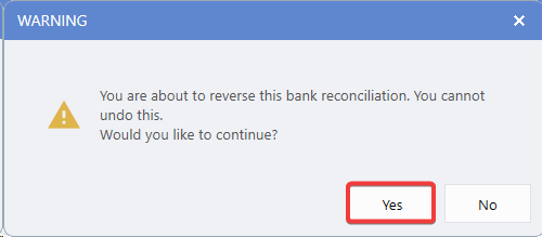 If an In-Progress Bank Reconciliation already exists, a warning message will appear. The current in-progress reconciliation will be cleared and replaced.