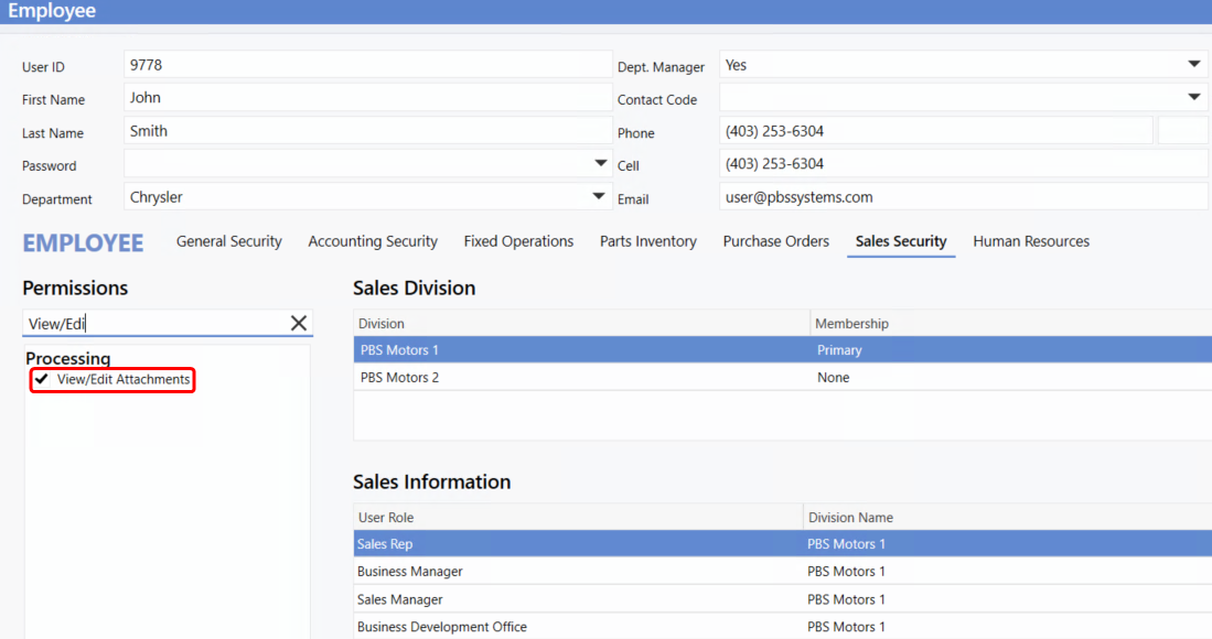 > Sales Security Tab / Processing Section > View/Edit Attachments