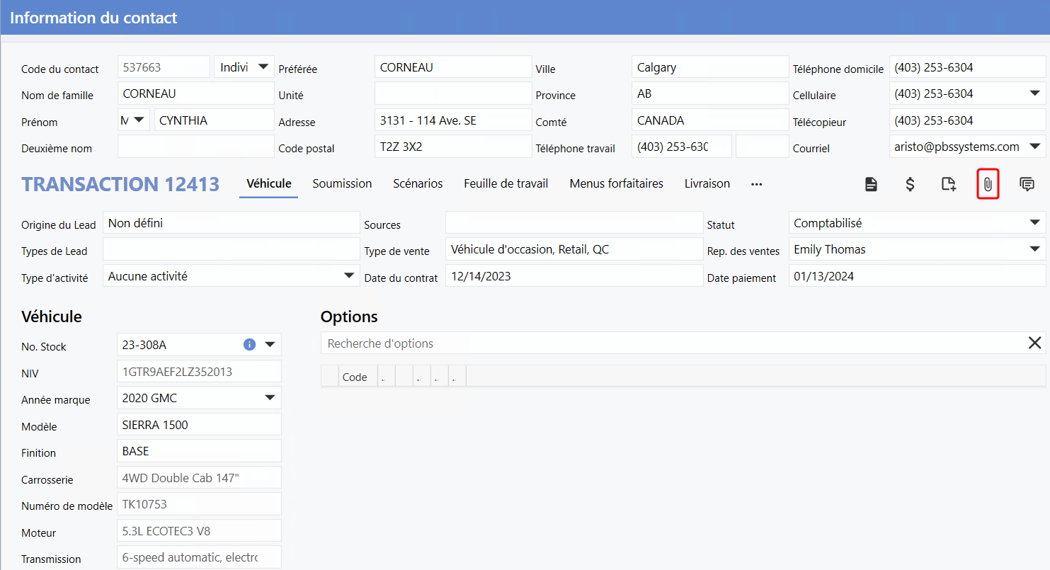 est maintenant disponible dans les autres onglets de la transaction, dont l'onglet Véhicule.