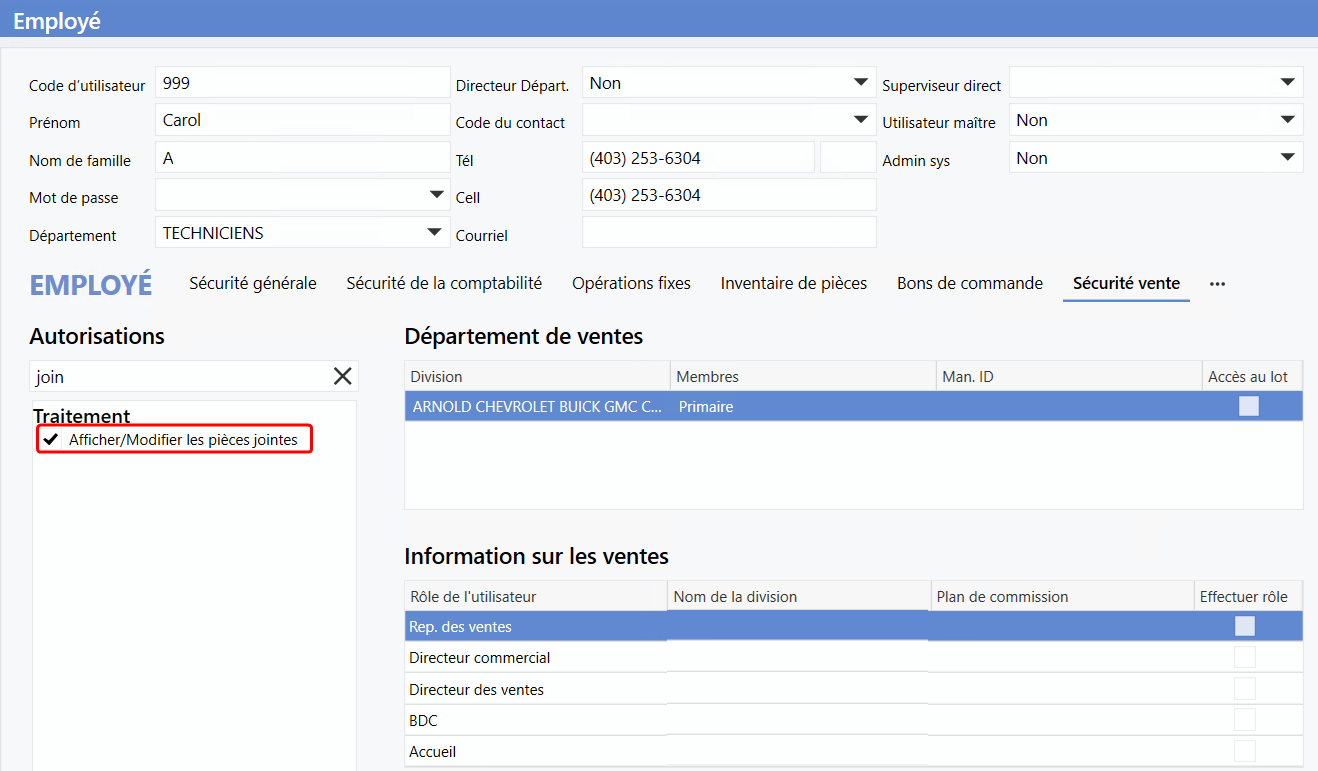 Comme l'icône trombone (pièce jointe) n'était disponible que dans la feuille de travail, l'accès à celle-ci était nécessaire pour compléter ces tâches et plusieurs représentants des ventes, sans cette permission, n'arrivaient pas à accéder aux documents de la transaction.