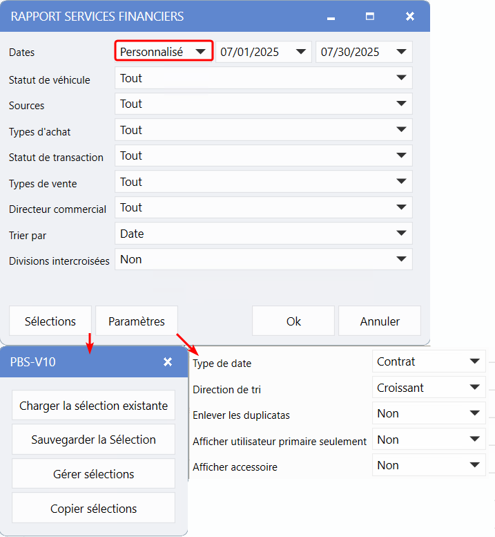 Rapports des ventes - Restructuration de la fenêtre des critères