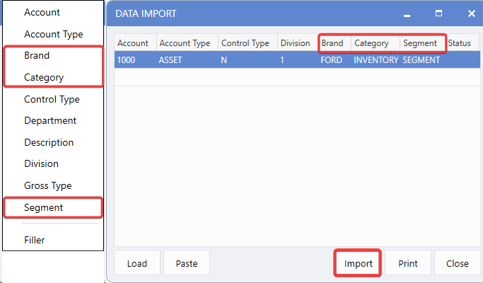 Accounting > General Ledger > Utilities > COA Data Import
