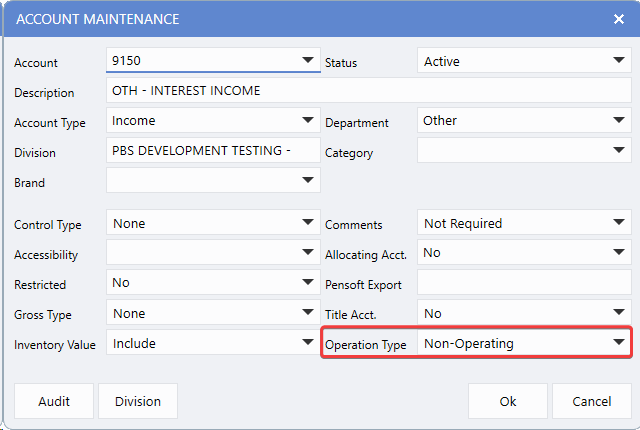 accounts. This change makes it easy to distinguish operating from non-operating accounts for accurate Financial Statement presentation - ensuring reports reflect your Dealership's true operational performance while maintaining compliance with accounting standards.