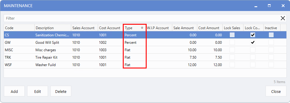 column is now available through right-click customization on the Service Fee Maintenance screen, allowing Users to quickly distinguish between