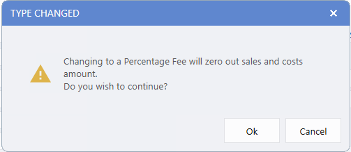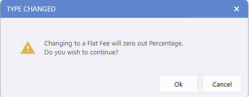 : A percentage value is required (zero is not allowed). Entering zero triggers a warning and prevents the fee from being saved.