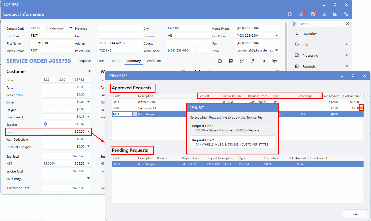 Percentage Fees can now be applied at the Request level for both Parts and Labour.