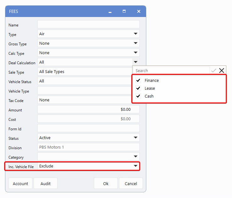 Deal Fees to include/exclude in the Vehicle File