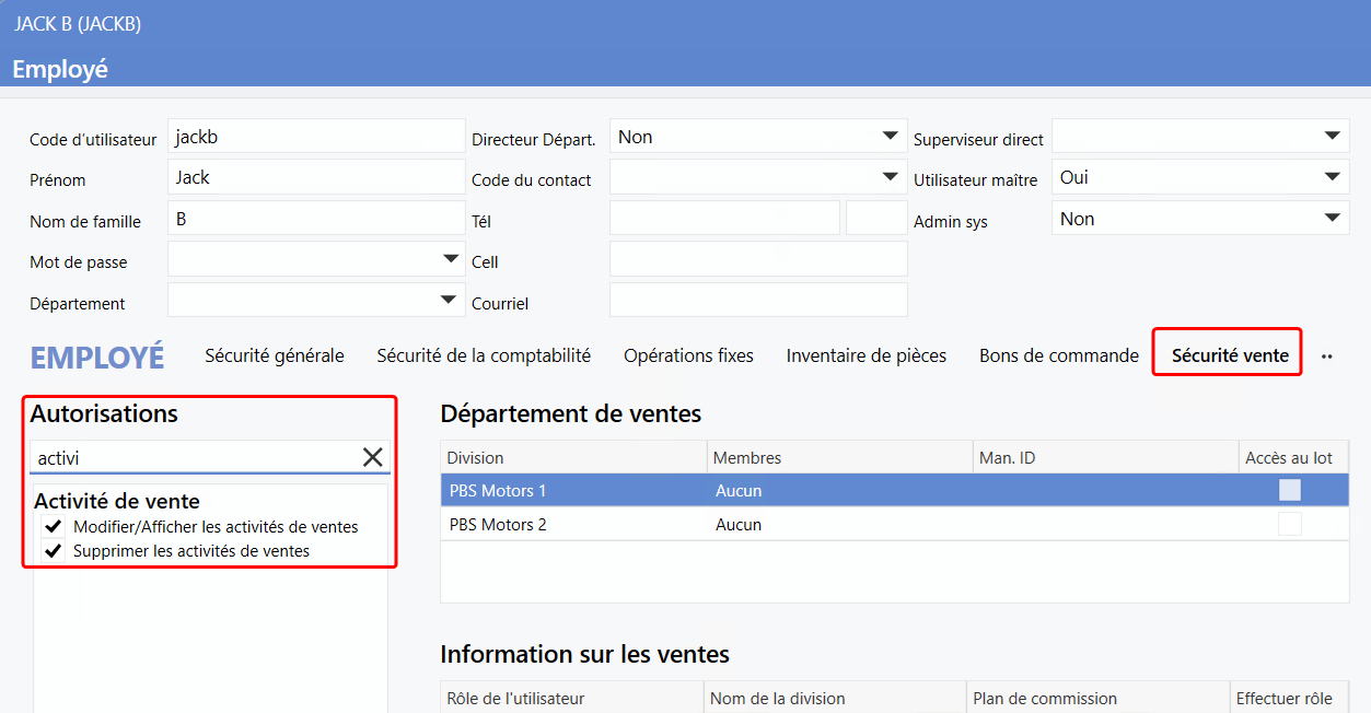 Toutes modifications apportées aux activités de vente sont désormais enregistrées dans le