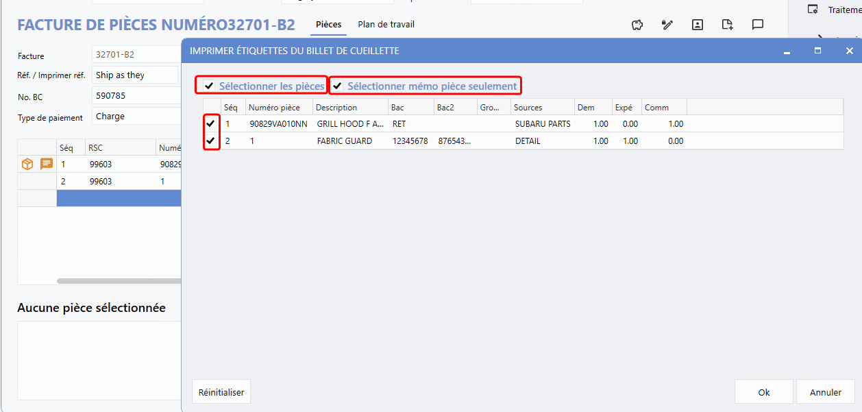 La version 10.23 apporte des améliorations robustes à l'impression d'étiquettes des billets de cueillette - Suite l'intégration des fonctions ci-dessous, elle procure plus que jamais efficacité et organisation au département des pièces :