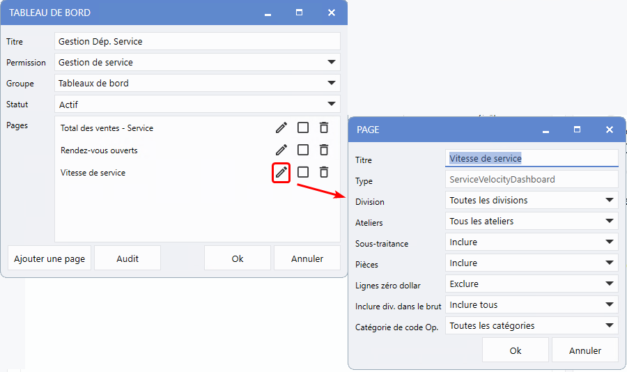 à un tableau de bord existant - tel que Gestion du département de service.