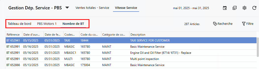 10.23 Tableau de bord Vitesse de Service