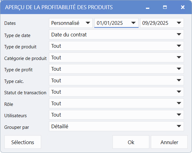 Ventes > Transaction > Rapports > Profitabilité des produits