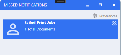 will be displayed when a printing job has failed. The User will then have the option to either