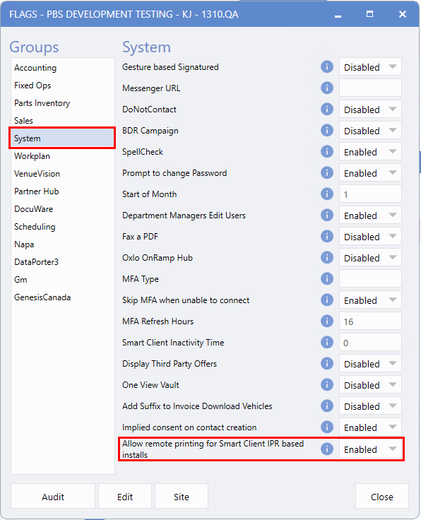 System > Tools > Control Flags > Edit > System > Allow remote printing for Smart Client IPR based installs > Enabled