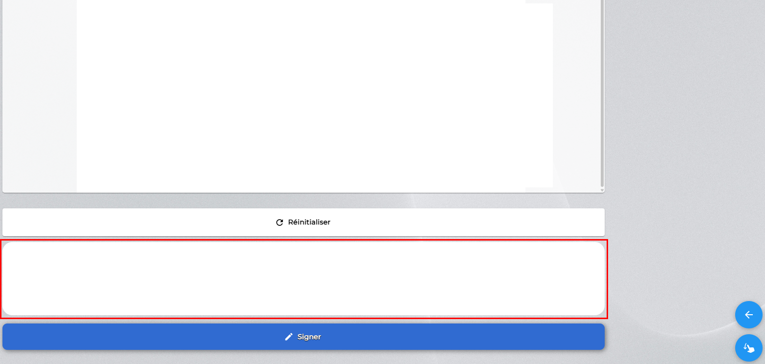 Une fois le bouton cliqué, le document est affiché afin d'être vérifié par le client, avec une boîte de signature en bas de page.